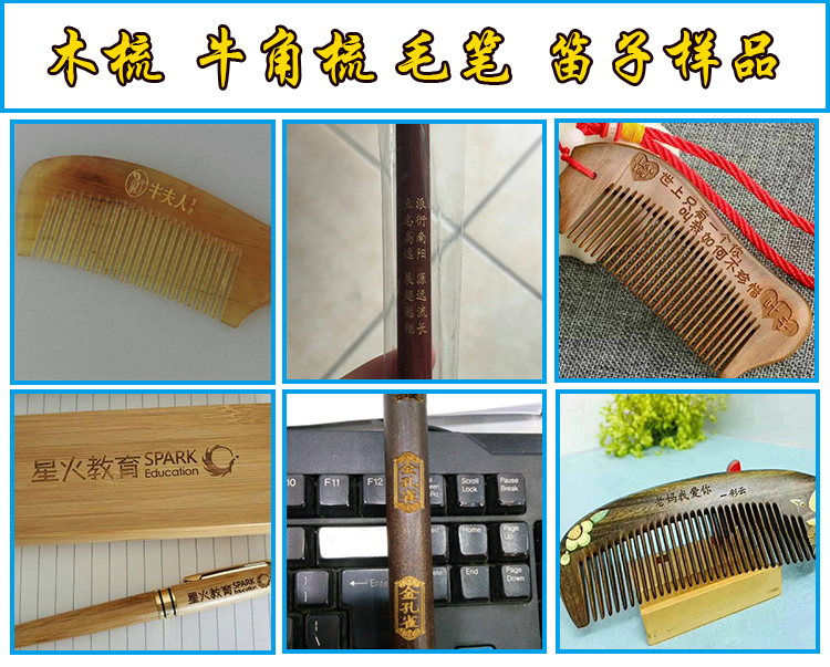 2、于小面積的工藝品加工:雙色板、木板、竹片、有機(jī)玻璃板、布匹上刻制各樣的圖形和文字。